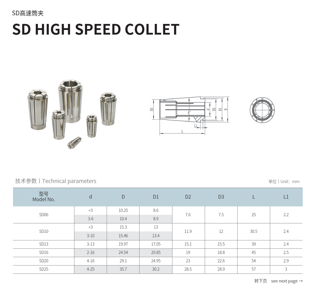 SD 高速筒夾是一種專為 高速、精密加工 設計的夾具,屬於 筒夾系列 的一部分,通常應用於 CNC 加工中心、數控車床 及其他高速機械加工設備。這款筒夾採用 Slim Design (SD) 設計,具有較短的懸伸和較小的外形,能有效提升夾具的穩定性,減少在高速旋轉時的振動,並保持加工的精度。