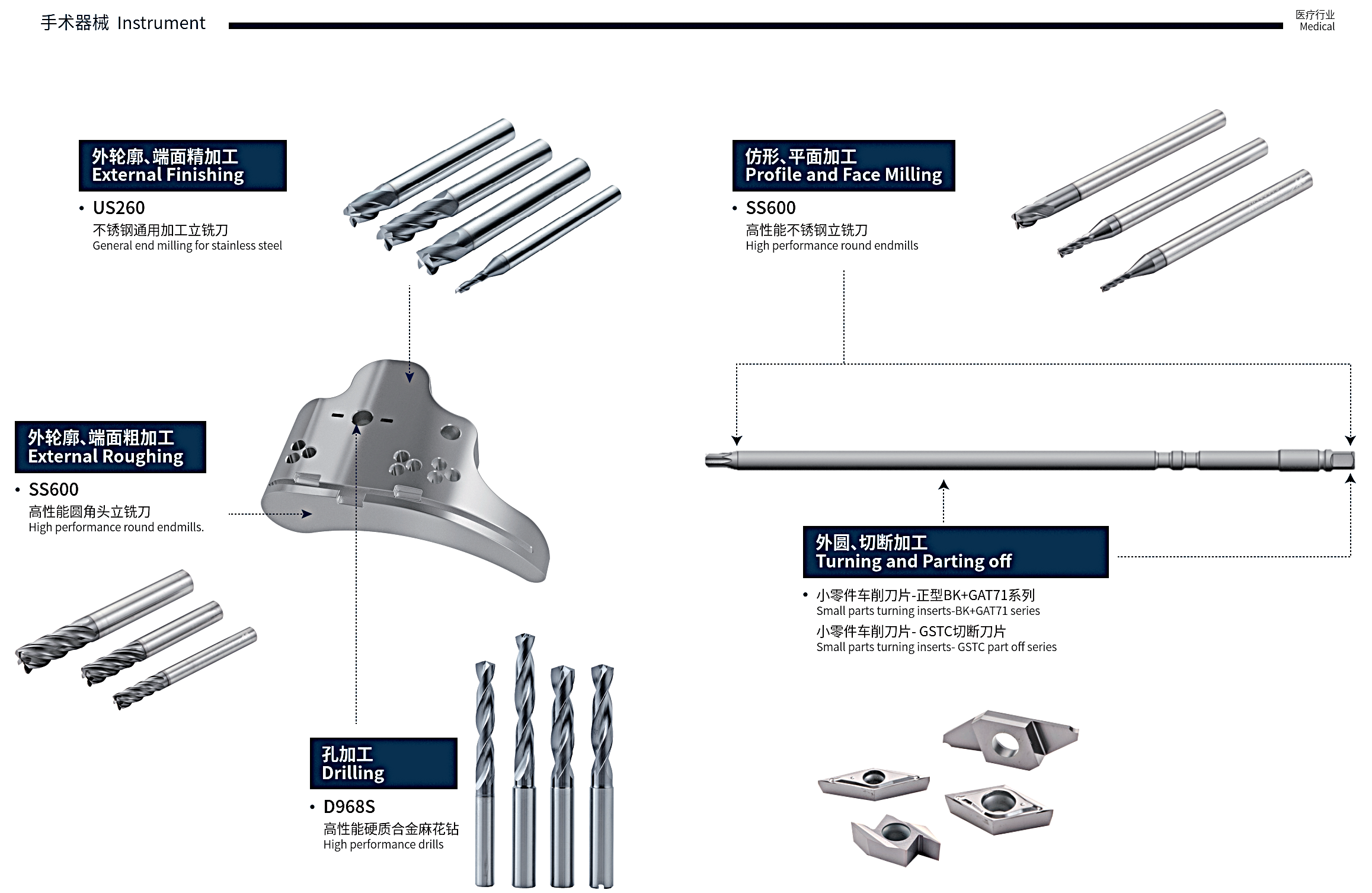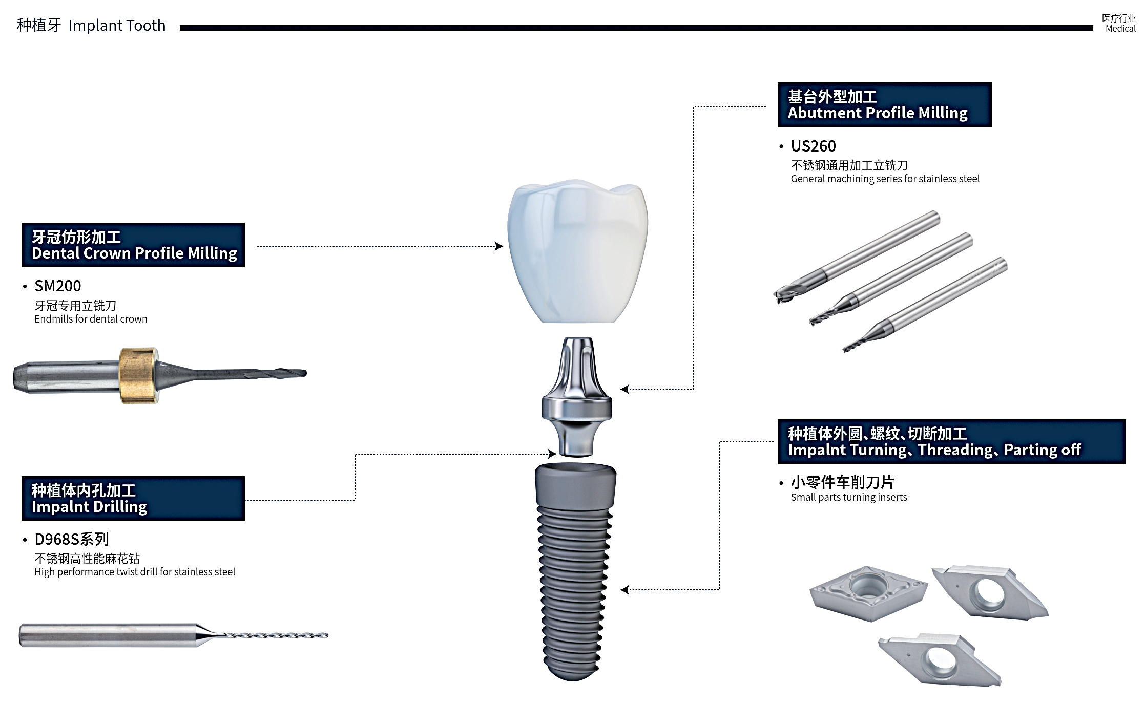 歐耀國際針對醫療產業的嚴苛製程與品質要求,提供微小徑、高精度刀具解決方案與穩定加工建議,協助客戶實現精密製造與品質可追溯的製程控制。