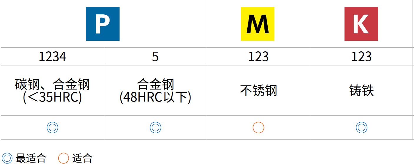 ● 適用於一般鋼材及鑄鐵材料(硬度 ≤48 HRC)之高效加工
