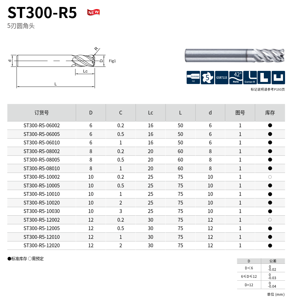 ST300 是專為鈦合金等難加工材料所設計的高效能立銑刀,採用全新研發的專用鈦合金銑削材質,在耐磨性與抗黏屑性能上表現出色。刀具經特殊圓角強化處理,提高刃口的強度與鋒利度,並有效抑制因圓角加工所產生的振動。