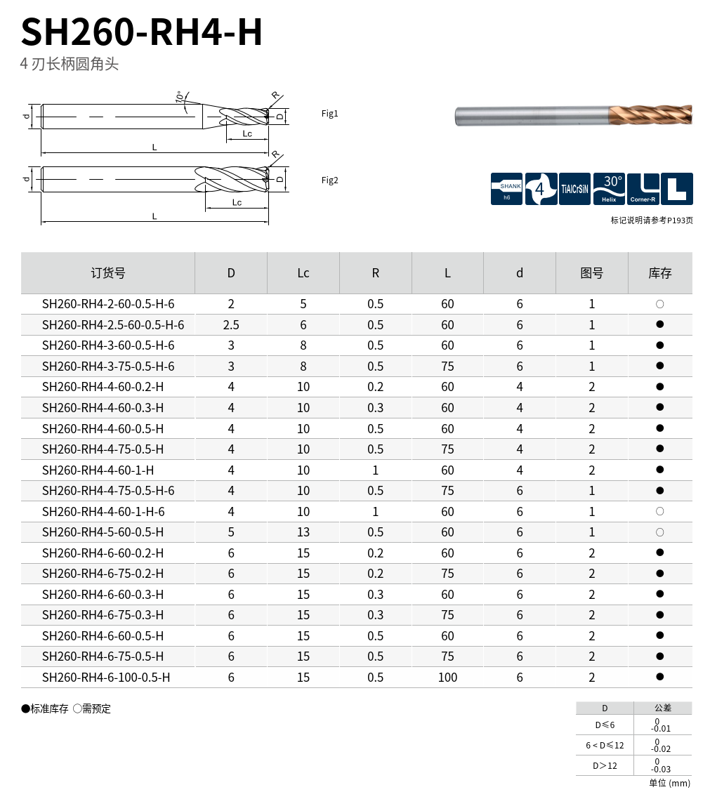 SH260-H 系列立銑刀專為高硬度材料(30~60HRC)之精加工與半精加工而設計,結合高強度高韌性基體與自有開發之高硬塗層,大幅提升刀具耐磨壽命與加工穩定性。主要特點如下: