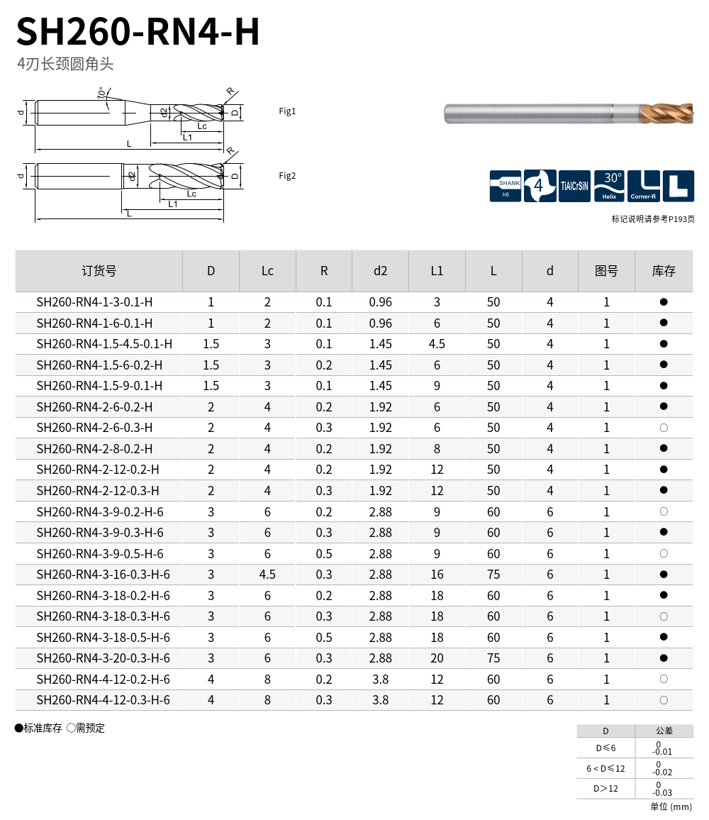SH260-H 系列立銑刀專為高硬度材料(30~60HRC)之精加工與半精加工而設計,結合高強度高韌性基體與自有開發之高硬塗層,大幅提升刀具耐磨壽命與加工穩定性。主要特點如下: