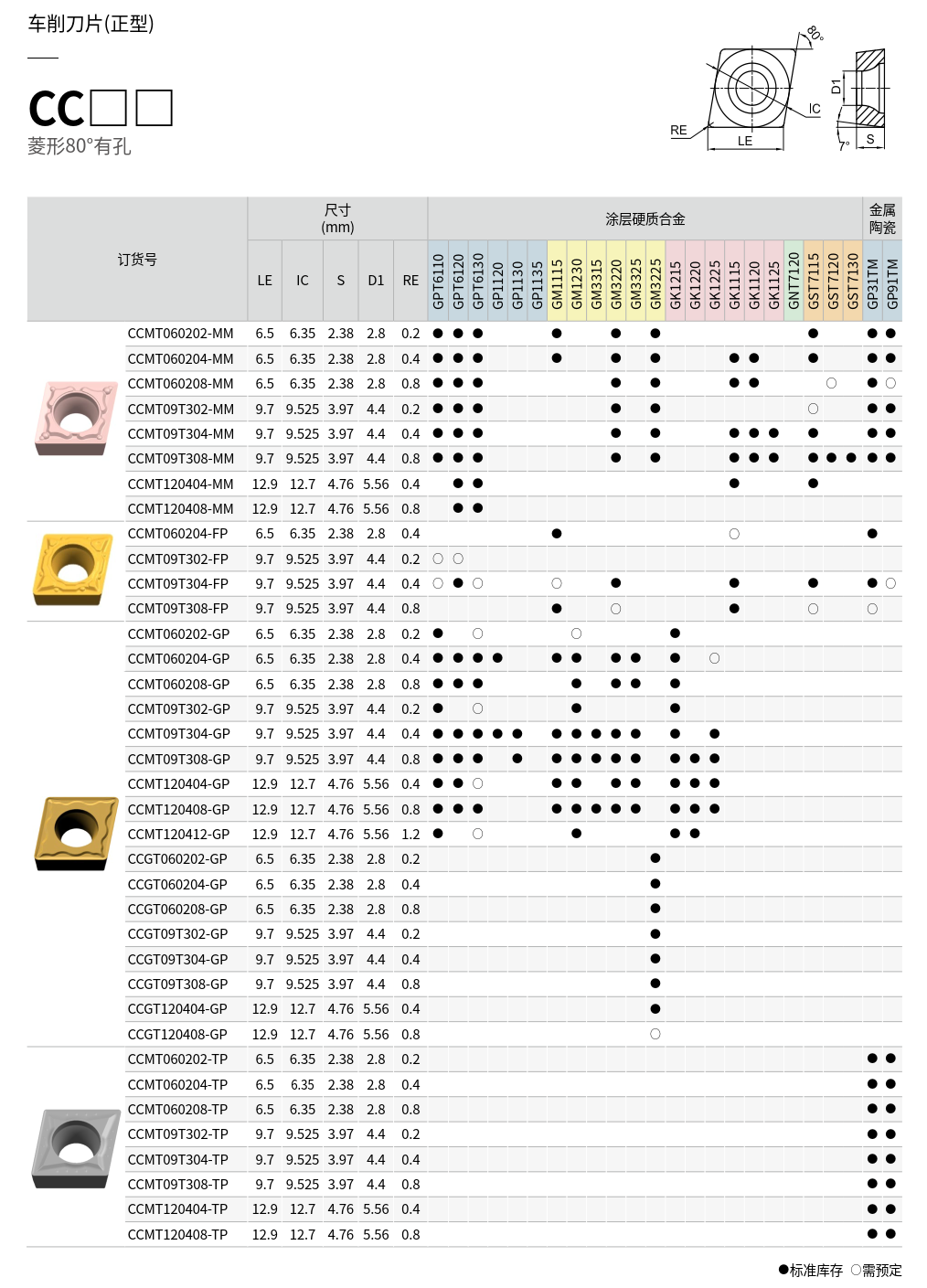 高銳利度槽型可選:如 LF(精加工)、MP(通用)、SM(穩定)等。