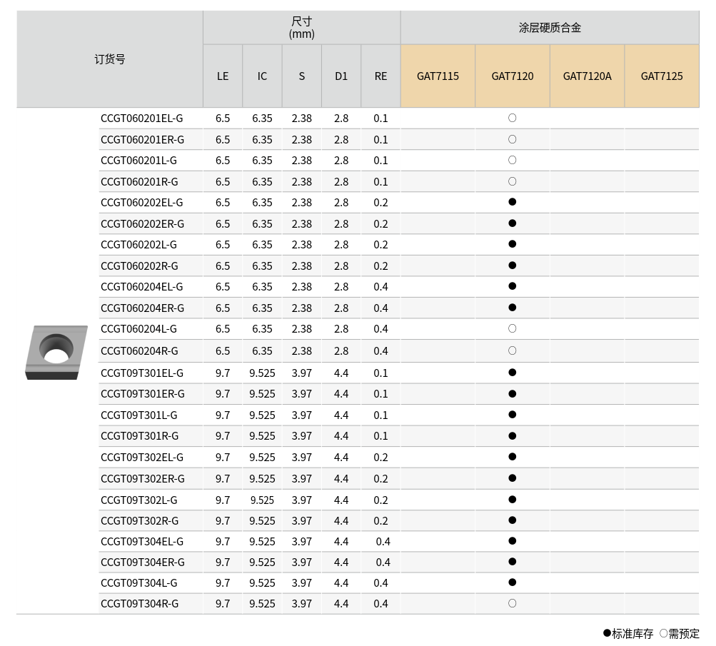 CCGT 刀片 採用 正型 7° 前角設計,幾何形狀為 80° 菱形(C型),屬於高精度單面研磨刀片,特別設計用於鋁、銅、工程塑膠等非鐵金屬的鏡面精加工與微進給切削作業。