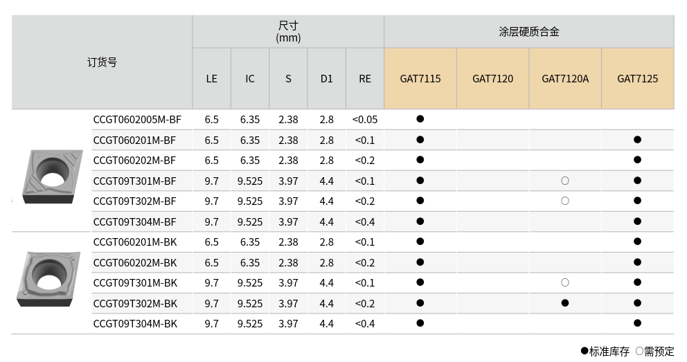 CCGT 相較一般 PVD 塗層刀片,更常使用 無塗層、TiB₂ 或 DLC 低摩擦塗層,刀刃極為銳利,適合應用於高轉速、高光潔度需求的場合,特別常見於 走心車床、精密 CNC 加工中心、醫療器材加工與電子零件製造業。