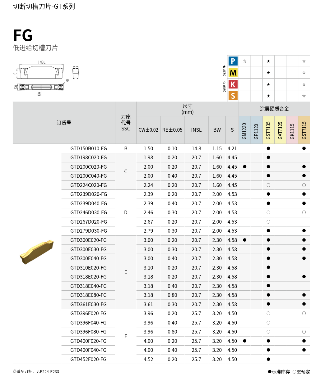 切槽-FG槽型刀片(低進給)