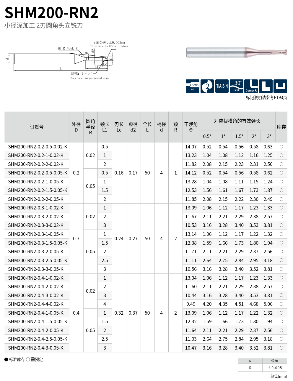 SHM200 為專門設計用於高精度深腔與細部加工的小徑球型立銑刀,適用於硬度 HRC65 的各類模具鋼與預硬鋼材料。刀具選用 GU 類超細晶硬質合金基體,搭配高性能 TiAlSiN 納米塗層,具備極佳的耐磨性與熱穩定性。結合特殊的長避空設計與優化的刃部角度,可有效解決深腔加工中的幹涉與刀具剛性問題。全刀具達到 高精度刃徑、公差(h5)與球頭輪廓控制,非常適用於精密模具與微細零件加工。