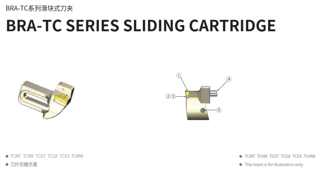 搭配BRA系列粗鏜刀和TCMT、TCMX、TCGT、TCGX、TCEX、TCMW等多款ISO標準刀片專用,依照需求可替換相對應的刀夾。