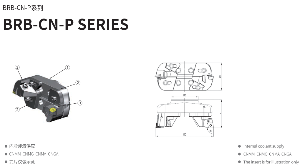 BRB系列粗鏜刀專為Φ160mm 至 Φ510mm的大孔徑粗加工所設計,刀體結構採用勾杆式(Hook)刀夾設計,鎖固強度高、切削穩定性佳,特別適合於重負載、高去除率的鏜孔加工。