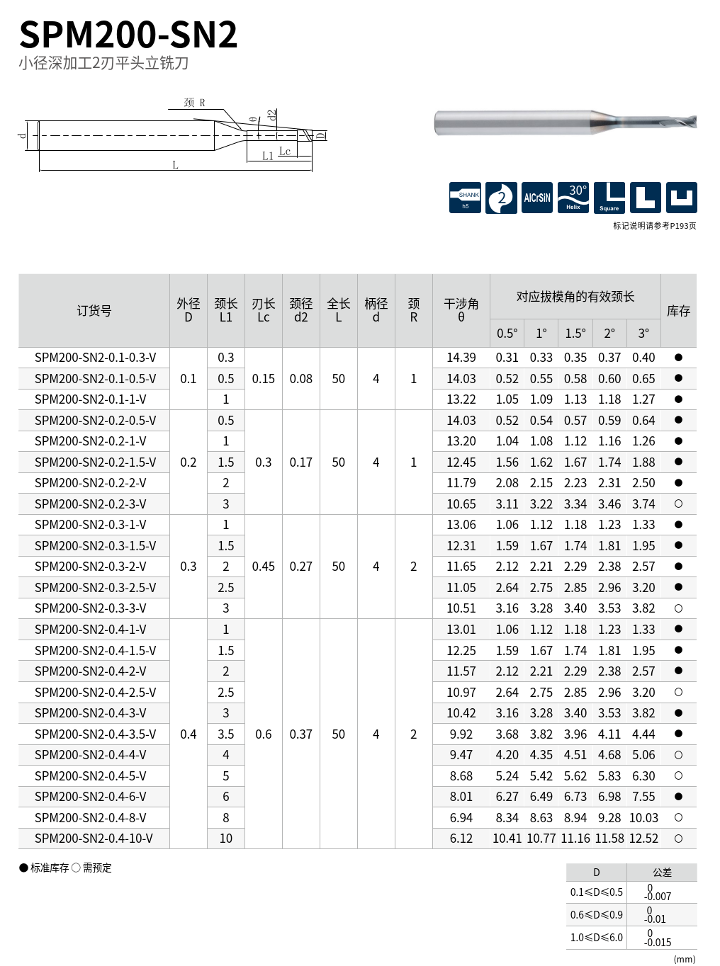 SPM200 系列小徑立銑刀專為高精度微細加工而設計,適用於碳鋼、合金鋼、淬硬鋼(HRC≤55)、銅、鋁合金等各類常見模具材料。刀具具備極高的刃徑精度、球頭輪廓精度與R角控制,柄部精度達 h5 等級,可滿足深腔與微結構加工對刀具尺寸與幾何形狀的嚴格要求。