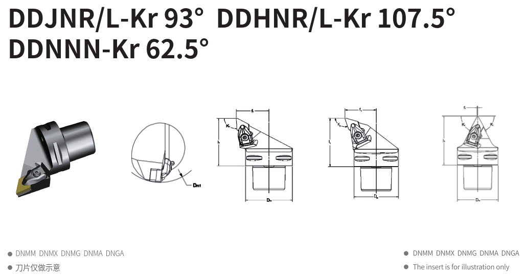 - 特點:主偏角小、刀尖進入角銳利,適用於狹窄空間及深槽區域的車削作業。