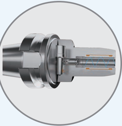 圖(1):液壓刀柄的液壓結構能有效吸收加工震動;減少加工時震動對機床主軸的損害,防止震動造成刀具磨損及工件損傷。
